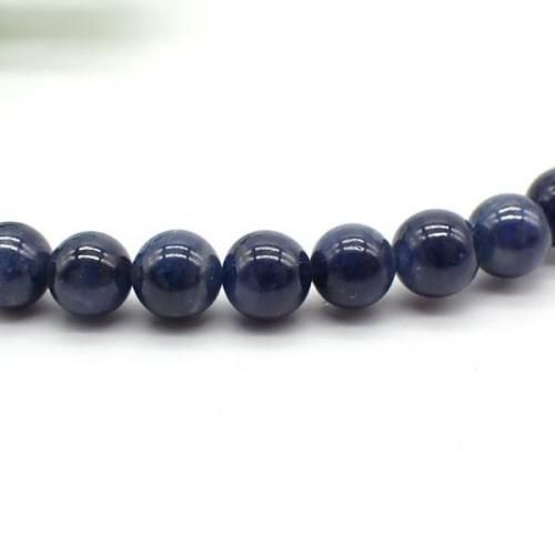 少し透明感のあるブルーのサファイア、白っぽい部分もありますが、サファイアのラウンドビーズとしては上ランクです。サファイアは、ダイアモンドの次ぎに硬度の高いコランダム(鋼玉)といわれる鉱物で、青い宝石の代表として有名です。