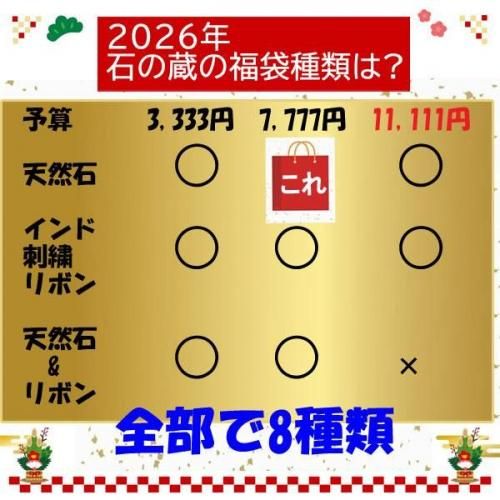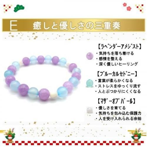豪華さと価格のバランスがちょうどいい人気のスタンダード福袋。6種類の選べるブレスレットに加えて、毎年好評の「浄化セット」や